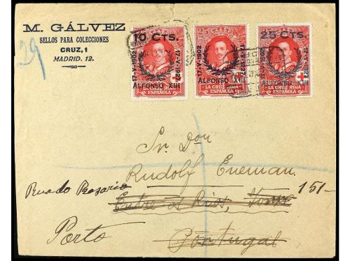 ESPAÑA. Ed. 352, 375, 376. 1927. MADRID a PORTUGAL. 25 cts., 10 cts. s. 25 cts. y 25 cts. s. 25 cts. carta certificada, al dorso llegada.