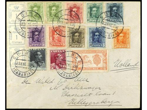 ESPAÑA. Ed. 310/22, 324. 1929. GÜÍMAR (Canarias) a ALEMANIA. Espectacular franqueo.