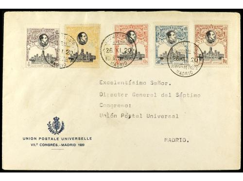 ESPAÑA. Ed. 305/09. 1920. MADRID correo interior. 40 cts. rosa, 50 cts. azul, 1 pta. carmín, 4 pts. castaño y 10 pts. naranja, al dorso llegada.