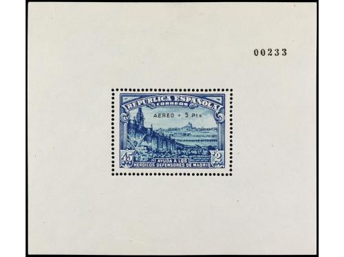 ** ESPAÑA. Ed. 760. H.B. Aéreo + 5 pts. azul. RARA sin fijasellos. Magnífica. Cert. COMEX y EXFIMA. Cat. 6.500€.