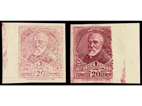 * ESPAÑA. Ed. 666ccs(2). 20 cts. lila rosáceo. COLOR CAMBIADO SIN DENTAR. 2 ejemplares con variedades de impresión. Cat. +314€.