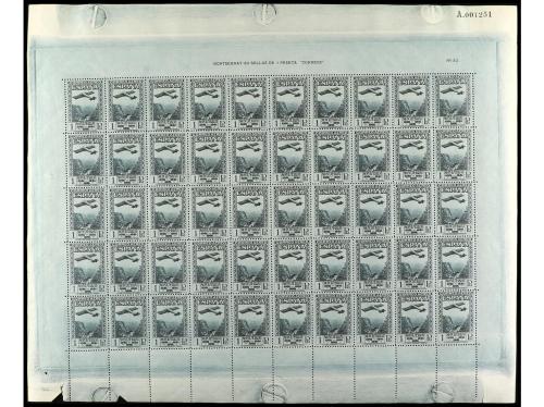 ** ESPAÑA. Ed. 650/54. SERIE COMPLETA en hoja de 50 sellos, por lo general centrajes buenos a excelentes, raro en esta emisión. Cat. +5.500€.