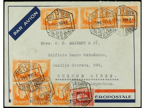 ESPAÑA. Ed. 669, 671 (10). 1934. BARCELONA a ARGENTINA. Espectacular franqueo, al dorso llegada.