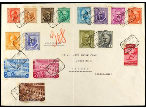 ESPAÑA. Ed. 695/710. 1936. MADRID a SITGES. Serie completa en carta circulada, al dorso llegada. RARA.