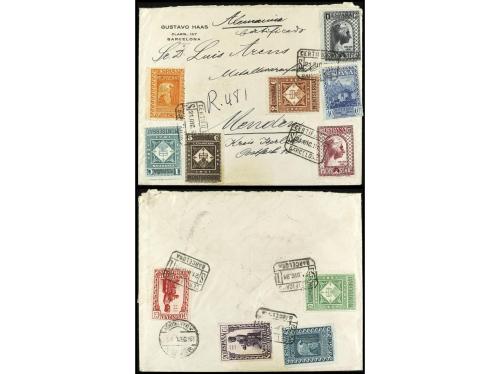 ESPAÑA. Ed. 636/46. 1931. BARCELONA a ALEMANIA. Serie hasta el 1 pta. franqueo en anverso y reverso, al dorso llegada. ESPECTACULAR y MUY RARA.
