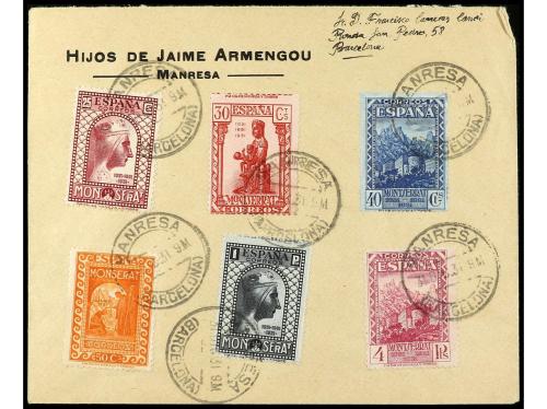 ESPAÑA. Ed. 642/47. 1931. Sobre no circulado con sellos de 25 cts., 30 cts., 40 cts, 50 cts., 1 pta. y 4 pts. mat. de Manresa.