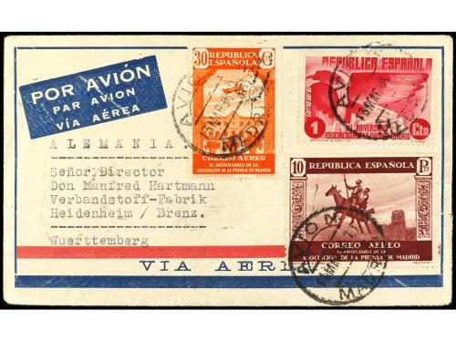 ESPAÑA. Ed. 711/25. 1936. MADRID a ALEMANIA. Serie completa en cuatro cartas, circuladas, al dorso llegadas.