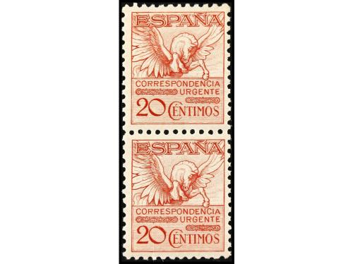 ** ESPAÑA. Ed. 592A (2). 20 cts. rosa. Pareja vertical. Muy bien centrado. Cat. 620€.