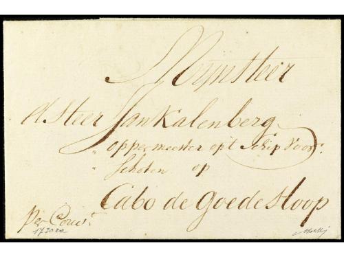 CABO DE BUENA ESPERANZA. (1730 ca.). Envuelta sin texto circulada de HOLANDA a CAPE OF GOOD HOPE dirigida al ministro Jan Kalenberg.