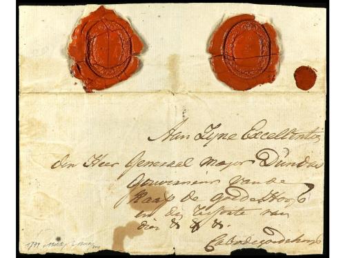 CABO DE BUENA ESPERANZA. (1799 ca.). Envuelta de carta circulada al CAPE OF GOOD HOPE y dirigida al Gobernador inglés Francis Dundas, circulada privadamente.