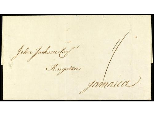 JAMAICA. 1786. GRAN BRETAÑA a JAMAICA. Envuelta sin texto, fechador de tránsito de Londres y porte de 1/-.