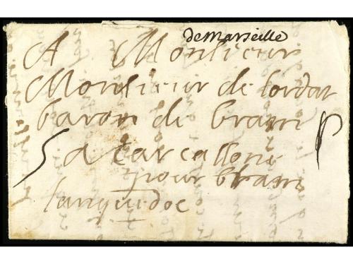MALTA. 1699 (14 junio). MALTA a CAVAILLON (Francia). Carta completa con texto. Marca manuscrita "De Marseille" a la entrada en Francia. Muy rara carta circulada en el siglo XVII .