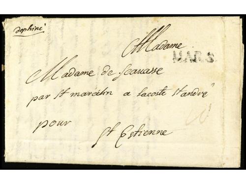 MALTA. 1715. MALTA a ST. ETIENNE. Carta completa con texto, marca de entrada en Marsella MARS y tasa de "10" sous.