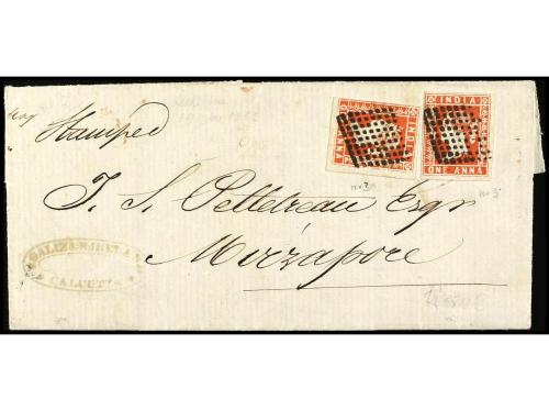 INDIA INGLESA. 18555. CALCUTA a MIZZAPORE. 1 anna rojo (2). Muy bonita.