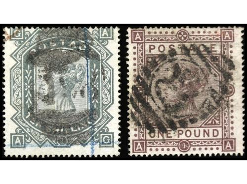 ° GRAN BRETAÑA. Yv. 41, 42. 10 s. y 1 £. Adelgazados (thinned). Cat. 6.000€.