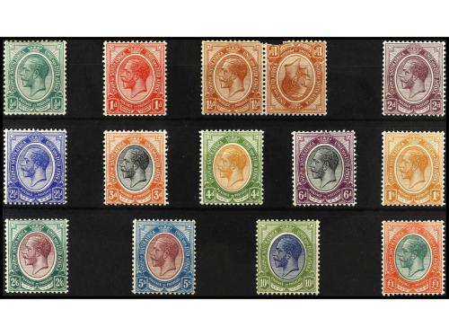 * AFRICA DEL SUR. Yv. 2/14 sin 10. SERIE COMPLETA a falta del 1/3 s. 13 valores. MUY RARA. 1/2 p. de escaso valor, sombra del tiemp (1/2 p. slight toned). Cat. 1.470€.