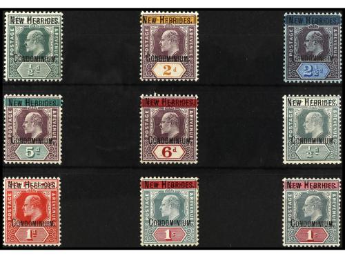 * NUEVAS HEBRIDAS. Yv. 6/14. SERIE COMPLETA. 9 valores. RARA. 1 s. (Yv. 14) tonalizado (toned). Cat. 1.165€.