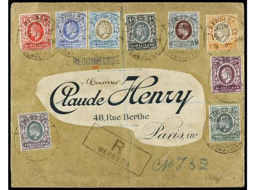 SOMALILAND. 1910. BERBERA a PARÍS. Carta certificada, precioso franqueo.
