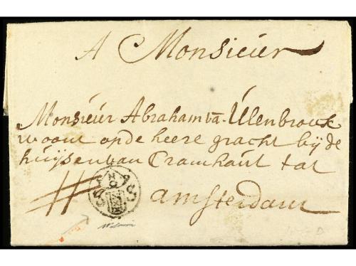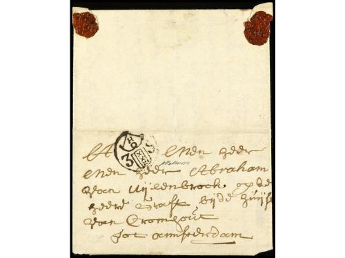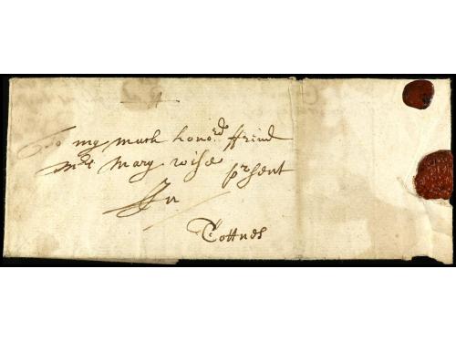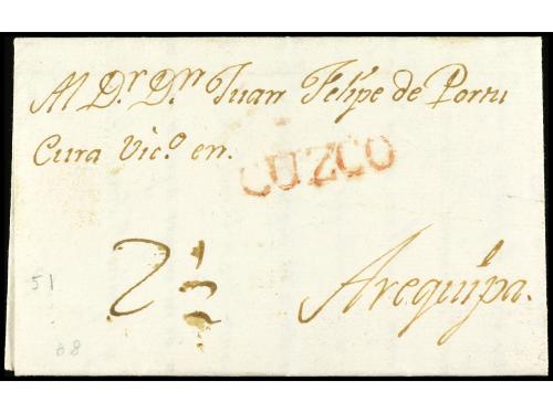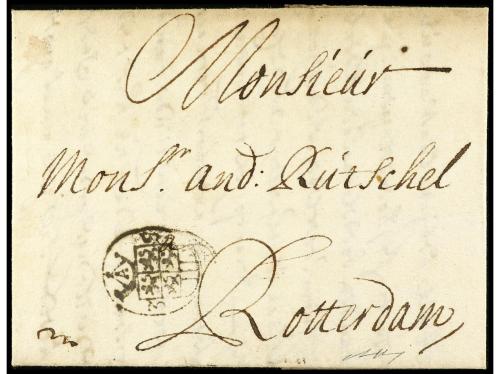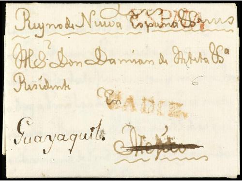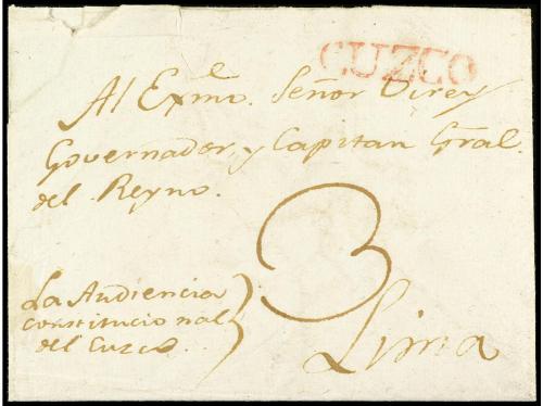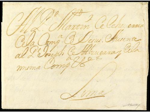 ✉ PERU. 1730. CÁDIZ a LIMA (Perú). Carta completa con texto circulada antes de la creación de los correos Marítimos en 1764 y las cartas anteriores a esta fecha estaban libres de portes. RARÍSIMA y una de las cartas más antiguas conocidas llegadas al Perú.