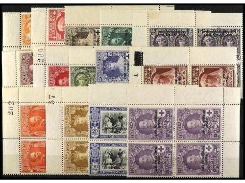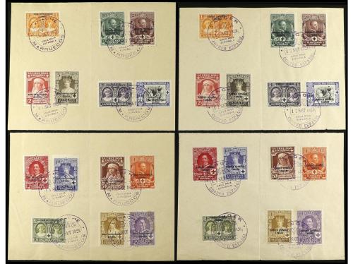 COLONIAS ESPAÑOLAS: MARRUECOS. Ed. 91/104 y Tánger 23/36. 1930. Serie de Cruz Roja de MARRUECOS y TÁNGER sobre fragmento con matasellos conmemorativo.