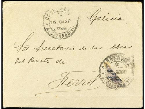 MARRUECOS. 1920. ALCAZARQUIVIR a FERROL. Sello de Telégrafos de 30 cts. lila (Ed. 12) bisectado, al dorso llegada. RARO.