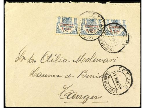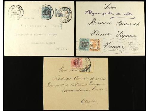 MARRUECOS. 1920. Tres cartas con franqueos provisionales usando sellos bisectados en Tetuán. Muy interesantes.