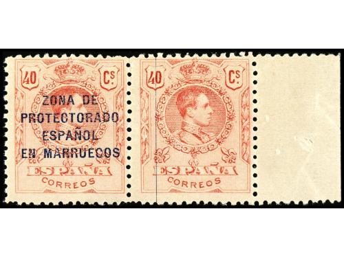 ** COLONIAS ESPAÑOLAS: MARRUECOS. Ed. 76hph. 40 cts. rosa. Pareja, un sello SIN HABILITACIÓN. MUY RARO, pocos ejemplares conocidos. Firma Gálvez. Cat. 350€.