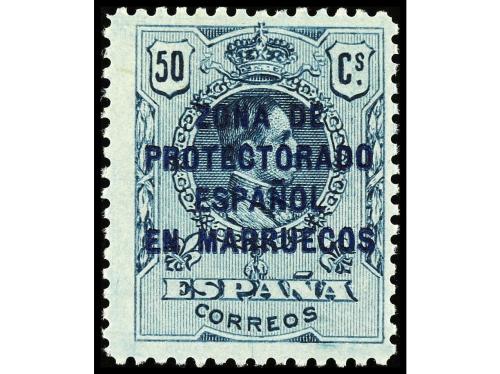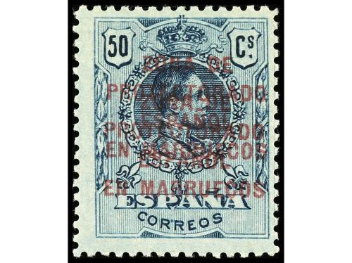 ** COLONIAS ESPAÑOLAS: MARRUECOS. Ed. 77hh. 50 cts. azul. HABILITACIÓN DOBLE. MAGNÍFICO. Cat. 100€.