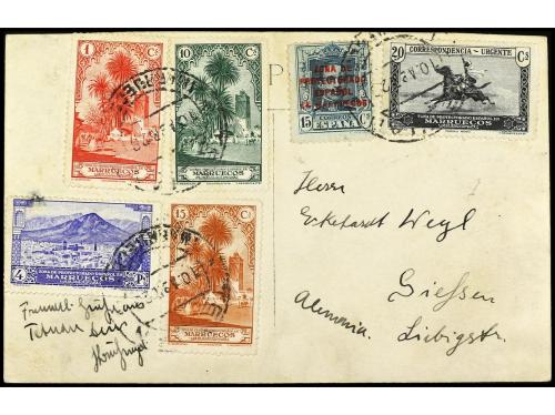 COLONIAS ESPAÑOLAS: MARRUECOS. Ed. 88, 123, 126/27, 135/36. 1928. TETUÁN a ALEMANIA. Tarjeta postal, precioso franqueo.