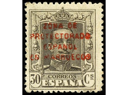 ** COLONIAS ESPAÑOLAS: MARRUECOS. Ed. NE 6. NO EMITIDO. 30 cts. castaño. MAGNÍFICO y MUY RARO. Firma ROIG.