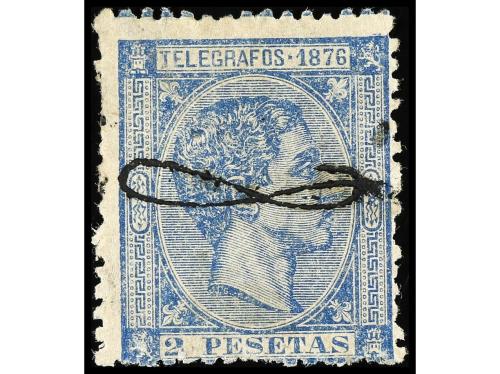 * COLONIAS ESPAÑOLAS: PUERTO RICO. Ed. T-14. TELÉGRAFOS. 2 pts. azul con rúbrica horizontal en negro, goma original y centraje habitual en este raro sello. Cert. CEM. Cat. 1.600€.