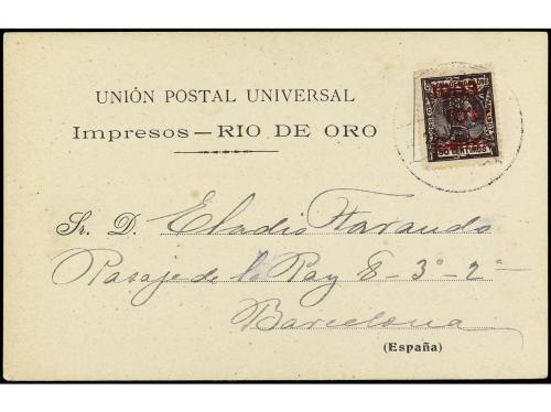 COLONIAS ESPAÑOLAS: RIO DE ORO. Ed. 37. 1909. VILLA CISNEROS a BARCELONA. Tarjeta postal con sello de 10 cts. s. 50 cts. lila.