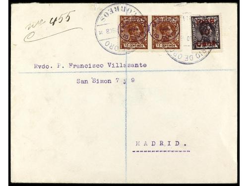 COLONIAS ESPAÑOLAS: RIO DE ORO. Ed. 35, 39 (2). 1908. RÍO DE ORO a MADRID. 10 cts. s. 50 cts. violeta y 15 cts. s. 75 cts. castaño (2). Carta certificada, al dorso llegada.
