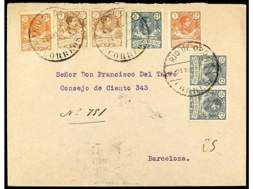 COLONIAS ESPAÑOLAS: RIO DE ORO. Ed. 41, 42 (2), 43, 44, 45 (2). 1909. RÍO DE ORO a BARCELONA. 1 cto., 2 cts. (2), 5 cts., 10 cts. y 15 cts. (2).