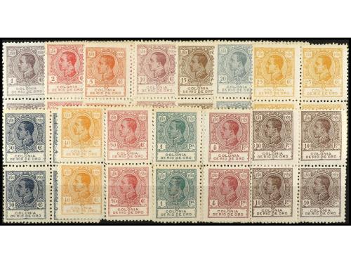 ** COLONIAS ESPAÑOLAS: RIO DE ORO. Ed. 117/29N (4). SERIE COMPLETA. 13 valores en bloques de cuatro. Numeración A.000,000. Cat. 720€.