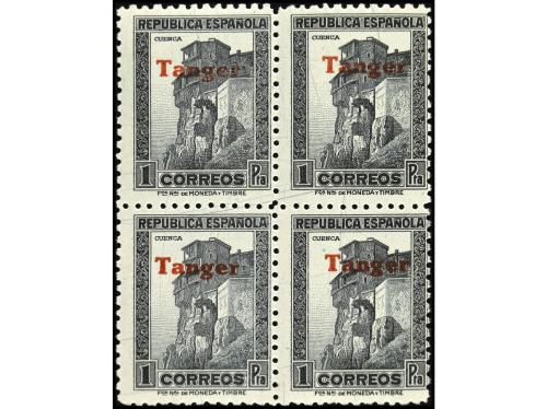 ** COLONIAS ESPAÑOLAS: TANGER. Ed. 124hcc (4). 1 pta. pizarra en bloque de cuatro con HABILITACIÓN EN COLOR CARMÍN. Cat. +900€.