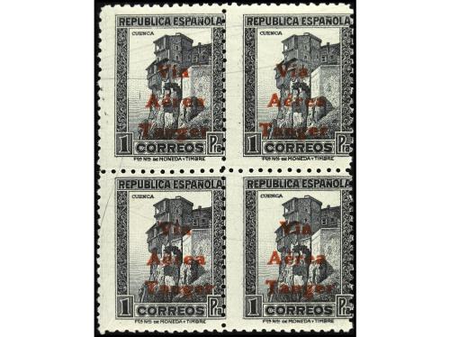 ** COLONIAS ESPAÑOLAS: TANGER. Ed. 138hcc (4). 1 pta. pizarra en bloque de cuatro con HABILITACIÓN EN COLOR CARMÍN. Cat. 300€.