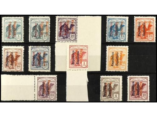 ** COLONIAS ESPAÑOLAS: SAHARA. Ed. 36/47C. SERIE COMPLETA. 12 valores DOBLE HABILITACIÓN VERTICAL, UNA INVERTIDA. MUY RARA. 10 pts. con fijasellos.
