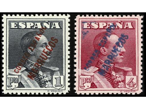 * COLONIAS ESPAÑOLAS: TANGER. Ed. 1083/13he + 108/113. SERIE COMPLETA. 6 valores en parejas, un sello "aEREO" con "a" minúscula. RARA. Firmados FARACHE. Cat. 495€.