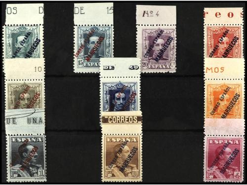 ** COLONIAS ESPAÑOLAS: TANGER. Ed. 53/61. 10 cts. a 10 pts. 10 valores. Todos cabecera de hoja. 50 cts. leve defecto en dentado. MUY RAROS. Cat. 884€.