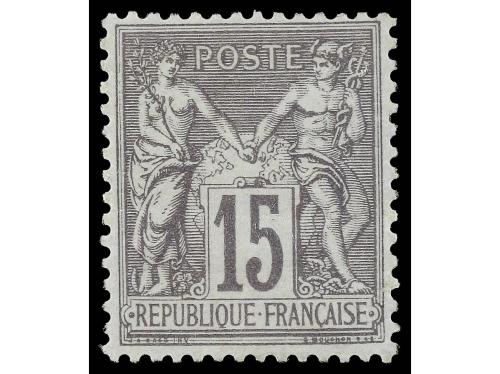 (**) FRANCIA. Yv. 77. 15 cts. gris, tipo II. LUJO pese a goma no original. Raro en esta calidad. Cat. +1.200€.