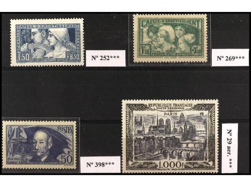 ** FRANCIA. Yv. 252, 269, 398, A29. 1928-40. Conjunto de sellos en nuevo. LUJO. Cat. 955€.