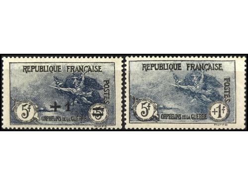 ** FRANCIA. Yv. 169 y 232. 1918-296. 1 Fr. s. 5 Fr. + 5 Fr. azul y 5 Fr. + 1 Fr. azul. Cat. 650€.