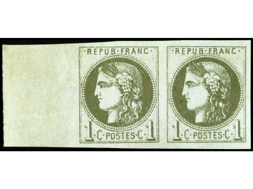 * FRANCIA. Yv. 39C (2). 1 c. oliva. Reporte 3, 1er estado. Pareja. Cat. 420€.