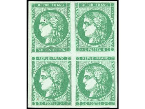 (*) FRANCIA. Ed. 42B (4). 5 c. verde amarillo. Bloque de cuatro. LUJO. Firmado CALVES. Cat. 1.900€.