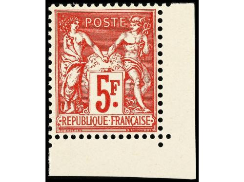 ** FRANCIA. Yv. 216b. 5 f. carmín. Variedad cartucho del valor roto. RARO y de LUJO. Cat. 330€.