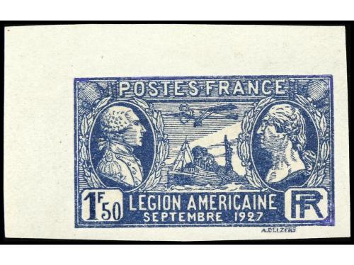 ** FRANCIA. Yv. 245a. 1,50 f. azul SIN DENTAR. Esquina de hoja. MUY RARO y de LUJO. Cat. 1.300€.