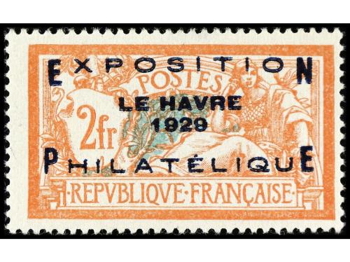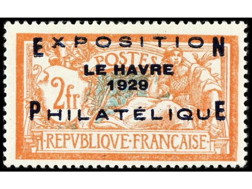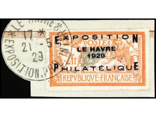 ° FRANCIA. Yv. 257A. 2 f. naranja y verde azul. Mat. de la Expo 21-5-29. Centrado de LUJO. Cat. +900€.
