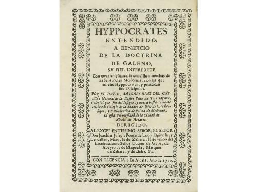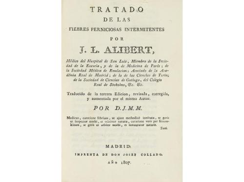 s. XVIII-XX. LIBRO. (MEDICINA). LOTE DE 6 OBRAS DE MEDICINA Y CIRUGÍA. Los títulos de las piezas son: VELASCO, CURSO TEORICO-PRACTICO DE OPERACIONES DE CIRUGIA (1780, parte I); REGLAMENTO APROBADO, Y MANDADO OBSERVAR POR EL REY NUESTRO SEÑOR PARA EL REGIMEN CIENTIFICO, ECONOMICO... DE LOS REALES COLECIOS DE MEDICINA Y CIRUGIA... (1827); LA SALUD, MANUAL DE HOMEOPATIA (1866); NOVELLAS: LA DOCTRINA FARMACÈUTICA CATALANA (1935); ROLDÁN: LA FARMACIA MILITAR ESPAÑOLA EN EL SIGLO XVIII (1925); FARFAN: TRACTADO BREVE DE MEDICINA (1944).