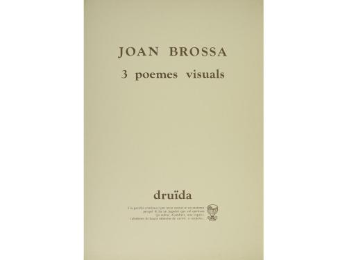 1982. LIBRO. (ARTE CONTEMPORÁNEO). 3 POEMES VISUALS. Carpeta de arpillera en folio mayor que contiene tres serigrafías originales estampadas en el Taller Vallirana por Oriol Treserra i Xavier Todó. El tamaño de las serigrafías es de 35 x 50 cm y llevan la firma y numeración de J. Brossa a lápiz. La tirada total es de 70 ejemplares.